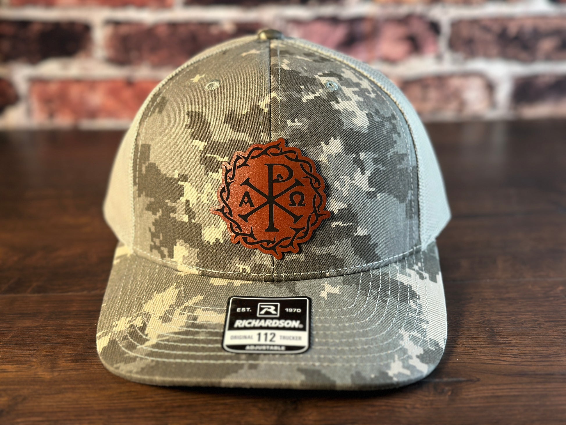 Chi Rho Digital Camo and Rawhide Richardson Trucker Hat