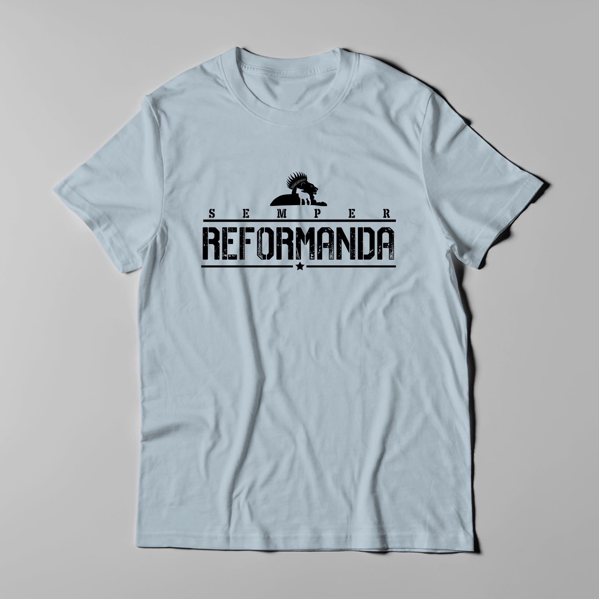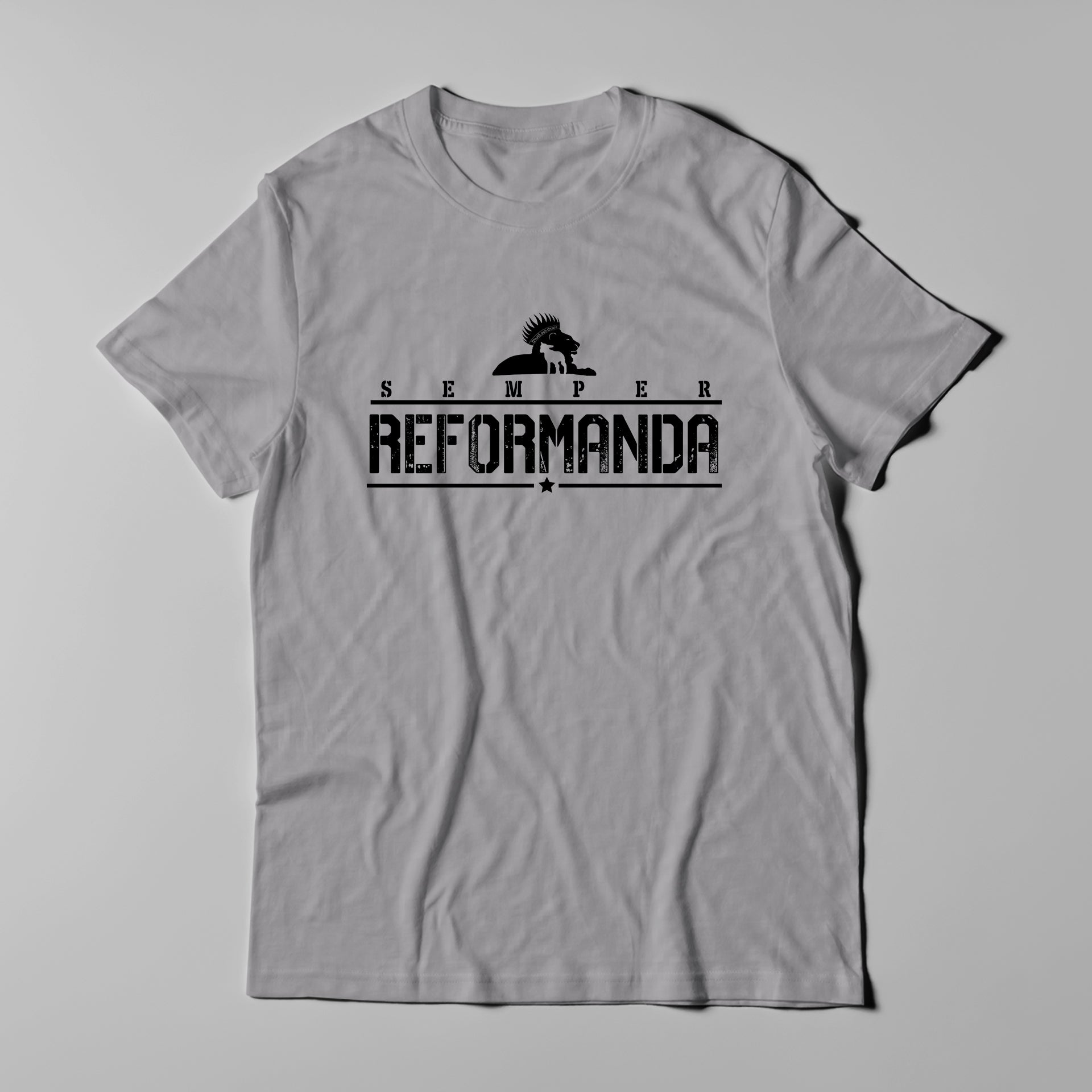 Semper Reformanda: Always Reforming. The phrase carries with it the idea and reminder that the local church is never perfected this side of Heaven, and neither is the Christian. There is always more work to be done, which is possible because of the sanctifying work of the Holy Spirit in the life of the believer. Even the Christian, or church, fully committed to Scripture, orthodox teachings, and orthodox practices, always has more work to do. So wear this shirt as both an encouragement and reminder: the work of reforming is not complete until we sit at Jesus' feet.