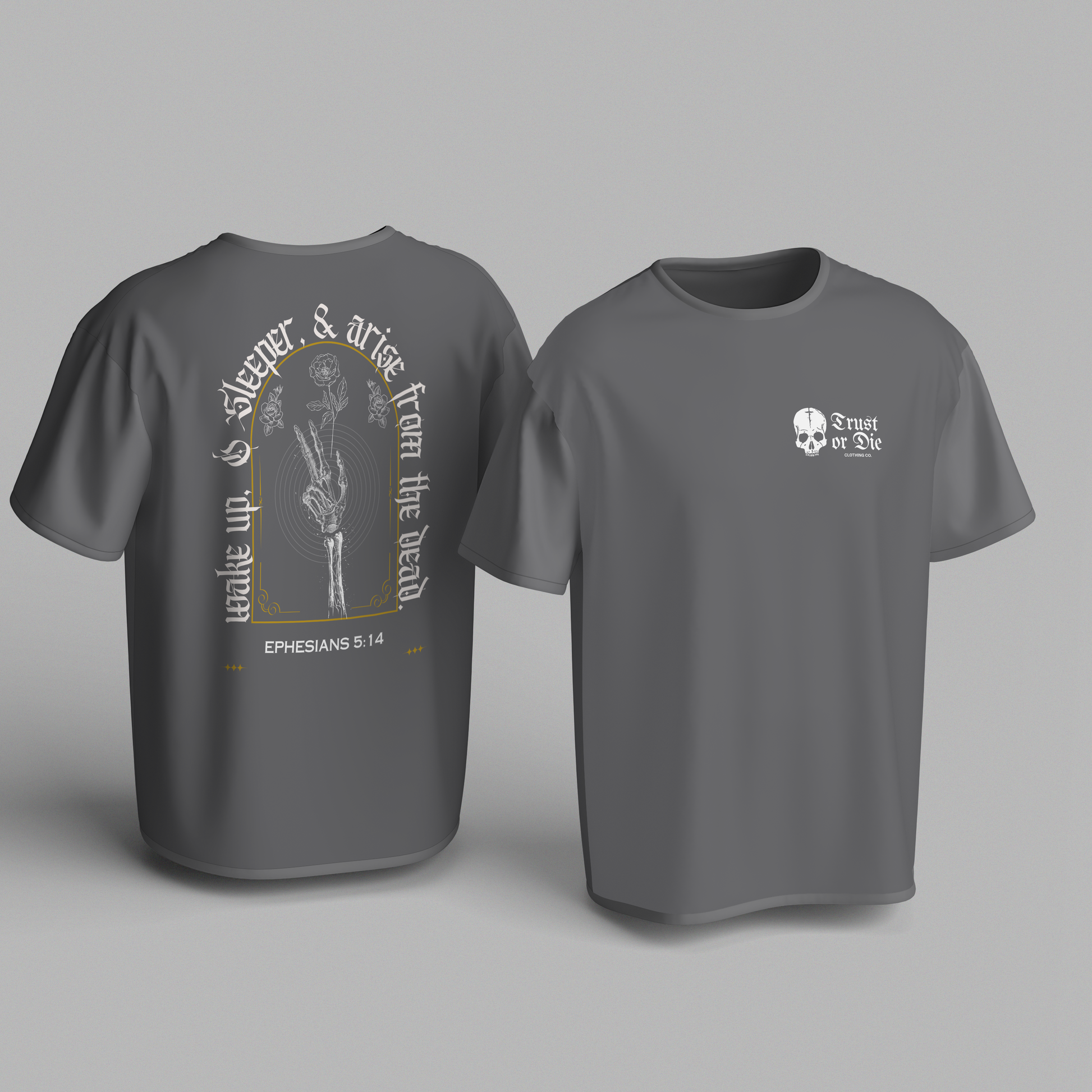 Inspired by Ephesians 5:14, this shirt is a call to spiritual awakening.
