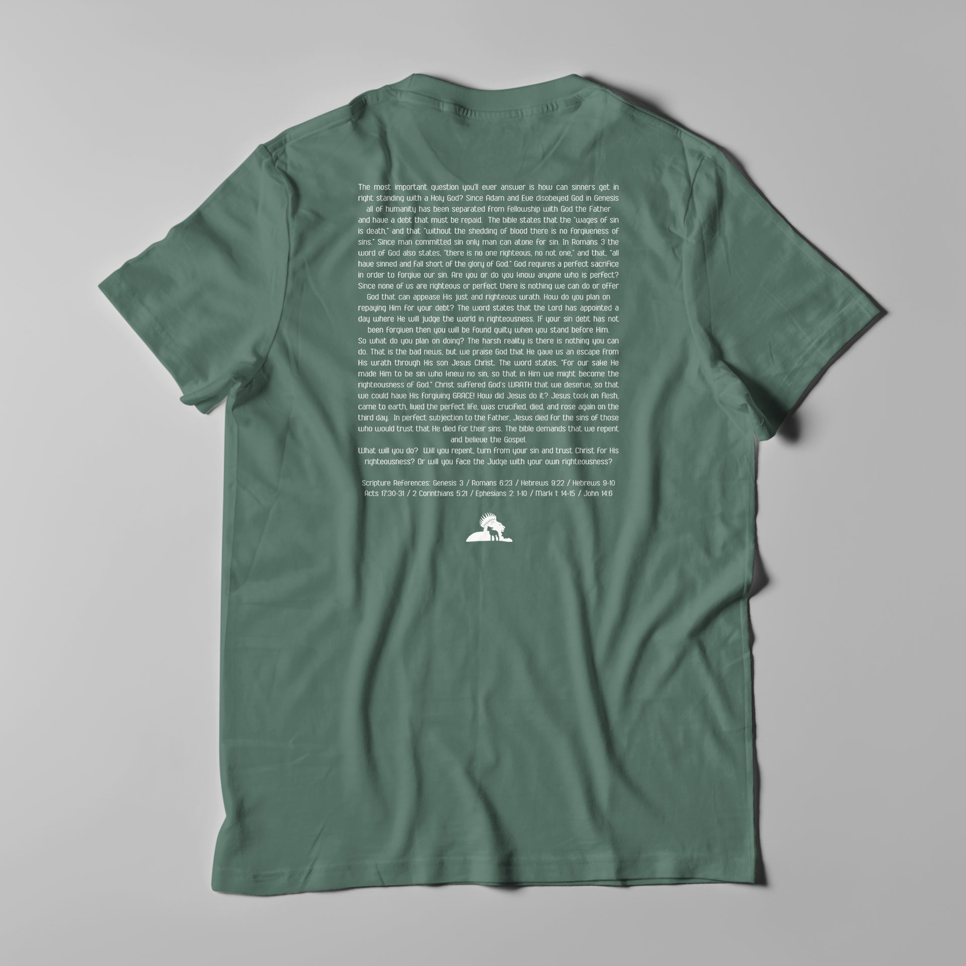 We are all sinners and deserve God's wrath, but in Christ, we receive God's grace. The image of the Lamb is the reminder that Jesus Christ is the Lamb of God who takes away our sins (John 1:29). The image of the Lion is a reminder that Jesus is the Lion of the Tribe of Judah (Rev. 5:5). The twelve points of the crown represent the twelve Apostles and twelve tribes of Israel, and serve as a reminder that Jesus is King. Together, this is a reminder that Jesus is the Lamb who was slain for our sins in order to show grace to those who repent, but He is coming back as conquering Lion and King to rescue His people and pour out wrath on His enemies. So repent and believe the gospel!